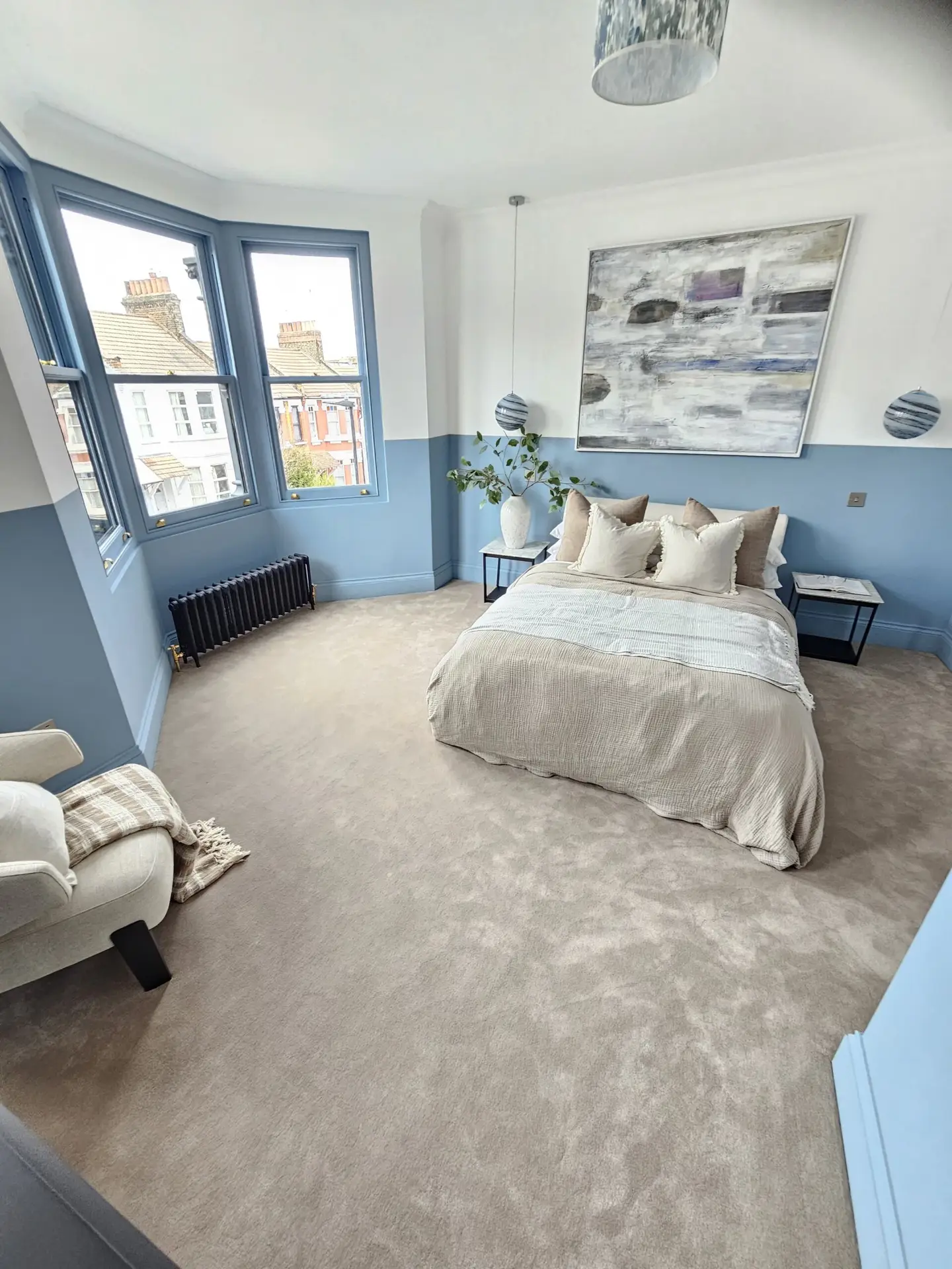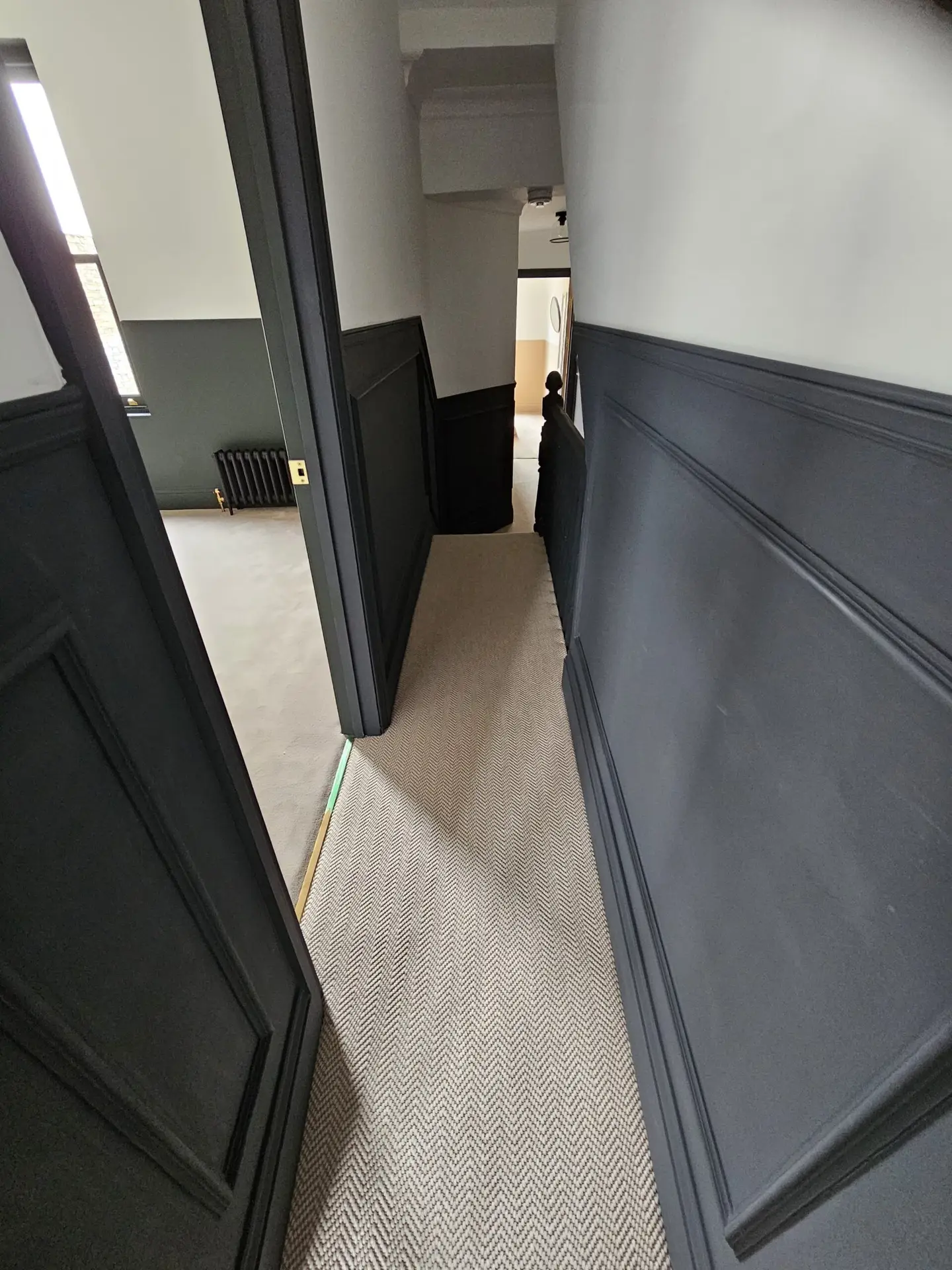 For this elegant 6-bedroom home, we provided a sophisticated flooring solution that blends style and durability. The bedrooms were fitted with natural sisal carpet, adding warmth, texture, and a timeless appeal. On the staircase, we installed a stunning flatweave 100% wool runner, offering both comfort and resilience while enhancing the home’s aesthetic. This project showcases our expertise in combining high-quality materials to create a beautifully finished space.